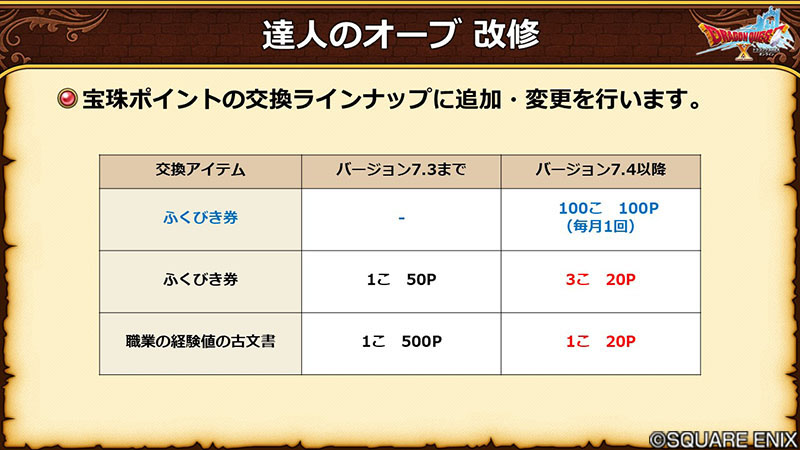 ・「宝珠ポイント100p」→「ふくびき券 100枚」に交換できるようになった(月1回のみ)