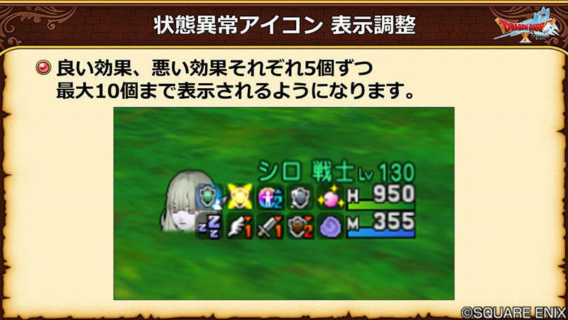 良い効果5個、悪い効果5個、合計で10個まで表示されるようになる