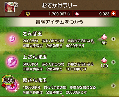 ・「超さんぽ玉」は、1万歩を歩くまで 歩数が2倍になるアイテム
