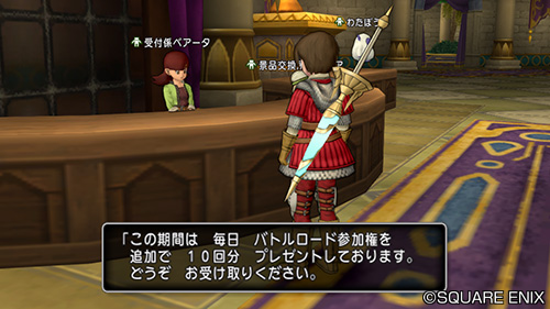 ・期間中に モンスター格闘場の受付係と話すと、毎日参加権を10回分貰える