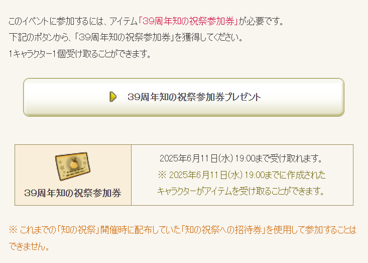 ・「39周年知の祝祭参加券」を持っている