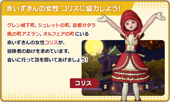 ・D6の噴水前に居る コリス と話すと、イベント発生