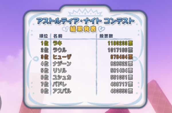 | 内容 | プレイヤーの投票によって、アストルティアのナイトを決める |
