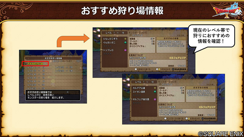 ゲーム内の狩場紹介機能。公式がオススメする狩場を紹介してくれる