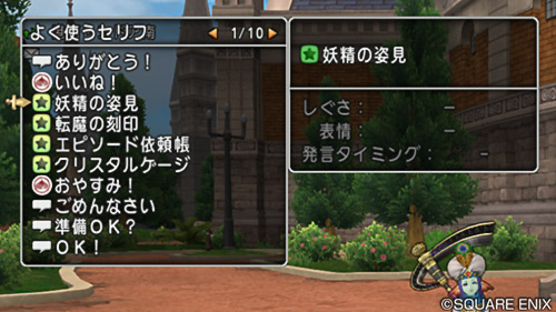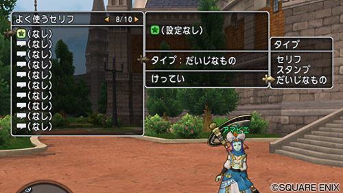 ・[どうぐ]→[だいじなもの]→[アイテム選択]→[よく使うセリフに登録] で、登録することも可能