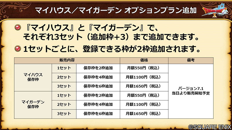 ・オプションプラン(追加料金)により、複数枠で保存できるようになる