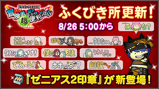 使うと、果ての大地ゼニアスの冒険にちなんだスタンプの第2弾が10種類増える。
