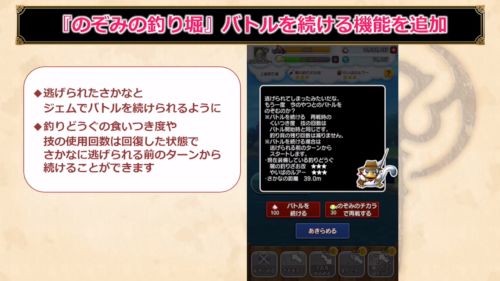 ・100ジェム払うと、「バトルを続ける」機能を追加。