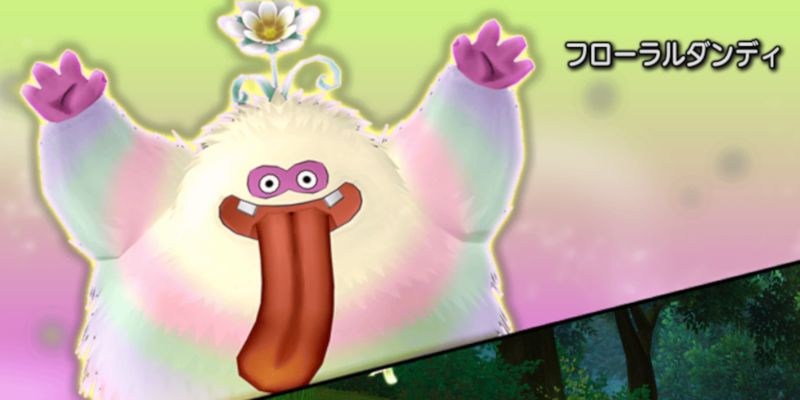 ※キラポンで弱体化は防げるが、キラポンは解除されてしまうひかりのブレス 光ブレス/扇状範囲/約480ダメージ あまいいき ブレス/扇状範囲/眠り ダンディソング 攻撃/自分周囲/約600ダメージ + 踊り ピンクタイフーン 風攻撃/自分周囲/約1.8倍ダメージ + 魅了 超ちからため 強化/自分/テンション3Up 後半より フローラルターン 弱体/自分周囲(広範囲)/混乱 + 幻惑 追記 ・2回連続で行動 - フローラルダンディ
