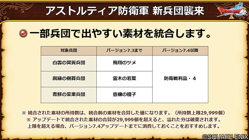 ・新たな素材追加に伴い、古めの素材3種が統合される