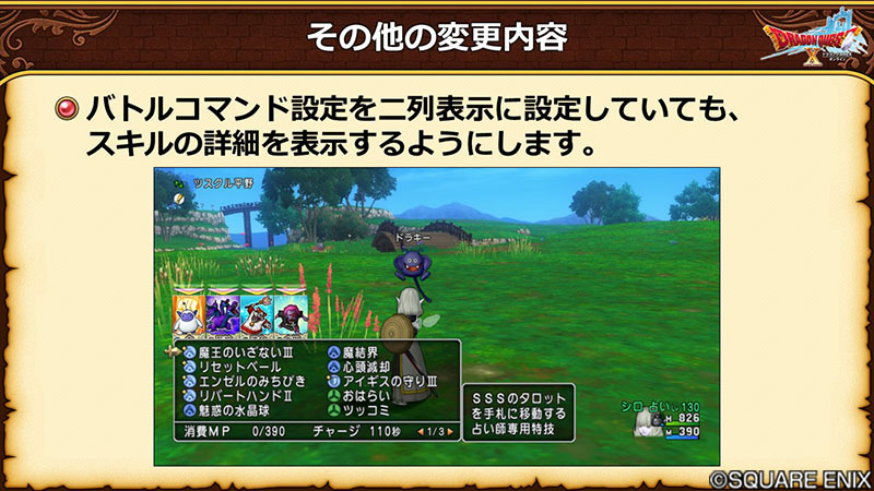 ・パラメータが表示される画面にて、「被ダメ軽減」「会心率」「呪文発動速度」等の合計値を見れるようになった