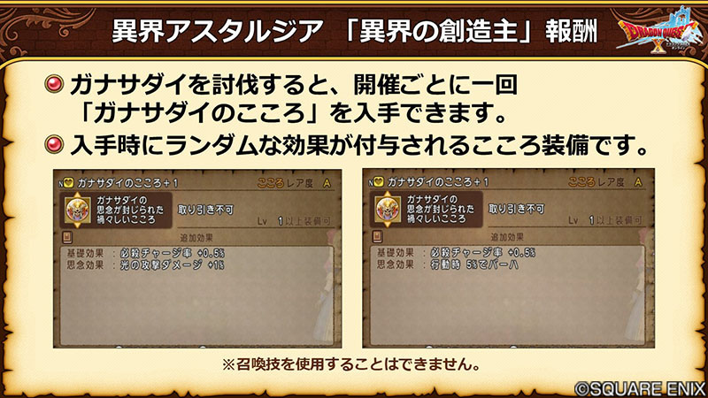 ・「光攻撃ダメージ+1%」「行動時5%でバーハ」は 既存の心装備には無い効果だが、今後追加される心装備に付ける予定が無いのかは不明