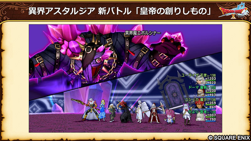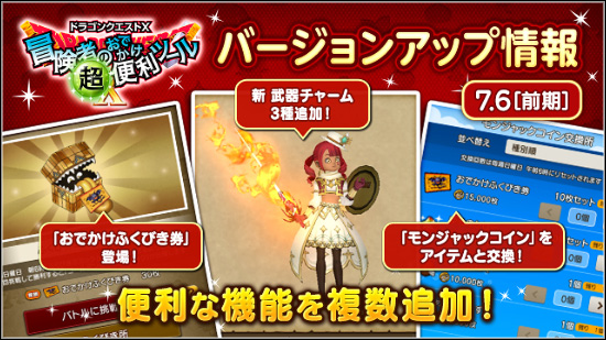 Ver7.6前期アップデート情報 2025-12-25更新 リリース 25/12/10(水) 13時 リリース 事前情報 Memo ・情報は、随時更新していきます ストーリー / クエスト関連 メインストーリー Ver7.6ストーリー クエスト LV138解放Ver7.6サブクエストクエストスキップ追加 ストーリー関連 ポルテのグルめぐり(行先追加)物語スキップ(任意Ver対応) バトルコンテンツ 異界アスタルジア 皇帝の創りしもの(新バトル)エボルシナー(新バトルのボス1)エボルキング(新バトルのボス2)ガナサダイの心(改修)ユニゾン(戦闘新要素)新おめかし衣装 防衛軍 紅爆の暴賊兵団報酬更新※素材調整/LV132武器実績(新兵団/隠者) 深淵の咎人 ノクゼリア装備(追加)デイリー報酬2倍(古い同盟ボス)ミニイベント追加(魔物管理人) 魔法の迷宮 新コインボス※時期未定プチ真幻界諸侯 その他 新モンスター(転生除く)天獄新ボス(嘲弄の幻影神)ブートキャンプ新実績ピラミッド調査報告書(更新) 戦闘関連 職業調整 Ver7.6前期の変更点レン強化、魔剣強化、その他調整 達人のオーブ 新宝珠 その他 特訓34p解放バトルアイコン(表示変更) アイテム関連 装備 LV132武器盾新レシピ(新武器盾)武器チャーム(3種追加)白宝箱(LV130武器盾) 景品 メリーポコ景品(追加) その他 旅人バザー(改修)おまとめ袋(対象追加)ハッピーハート(値下げ) 生活系 便利機能 名前表示設定(配信者対策)カムバック設定 おしゃれ関連 マイコーデ(髪型対応)プレミアム髪型5(有料) その他 大富豪(報酬更新)ショップギフト(PGを贈る機能) ゲーム外の機能 超便利ツール Ver7.6前期変更点おでかけふくびき券、釣り堀(コイン追加)、おでかけ道場(値上げ) 等