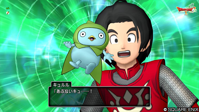 ・ドラクエのロゴ付近に「キュルル」らしきキャラが。右上の男性は、トーマにも見える